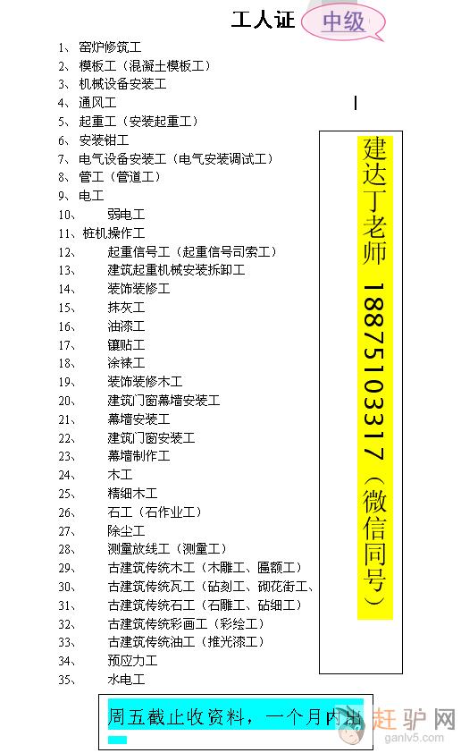 电工 模板工 起重工 起重信号工 彩绘工 通风工 镶贴工 涂裱工 石工 安装钳工 电气设备安装工 装饰装修工 防水工 手工木工 精细木工等75g_a_n_l_v_5_c_o_m个工种