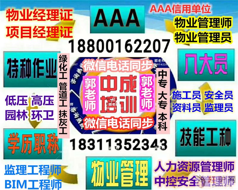 中成培训百余种证书报考如想了解更多可联系中成培训郭老师电话微信18800162207,18311352343QQ1277366319一对一咨询全国物业管理企业经理培训报名条件培训费用1200含教材视频