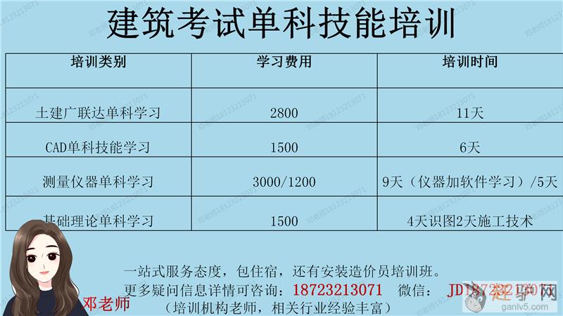 建筑单科技能培训包括有土建广联达、CAD、测量仪器、基础理论单科学习等等。一站式服务,价格优惠!ganlv5.com